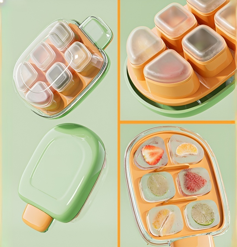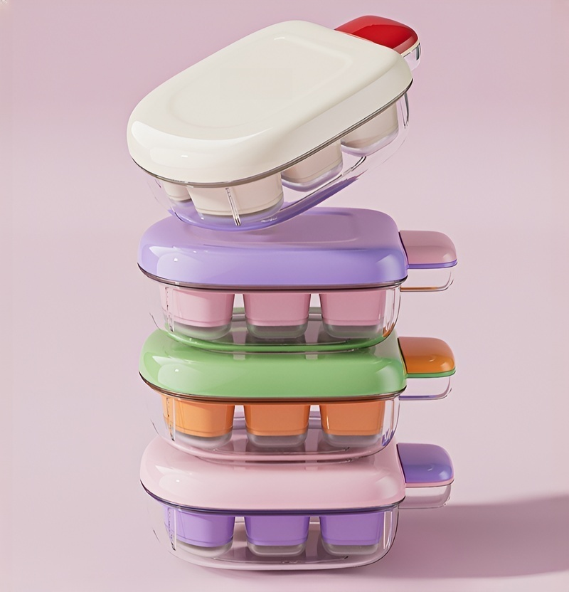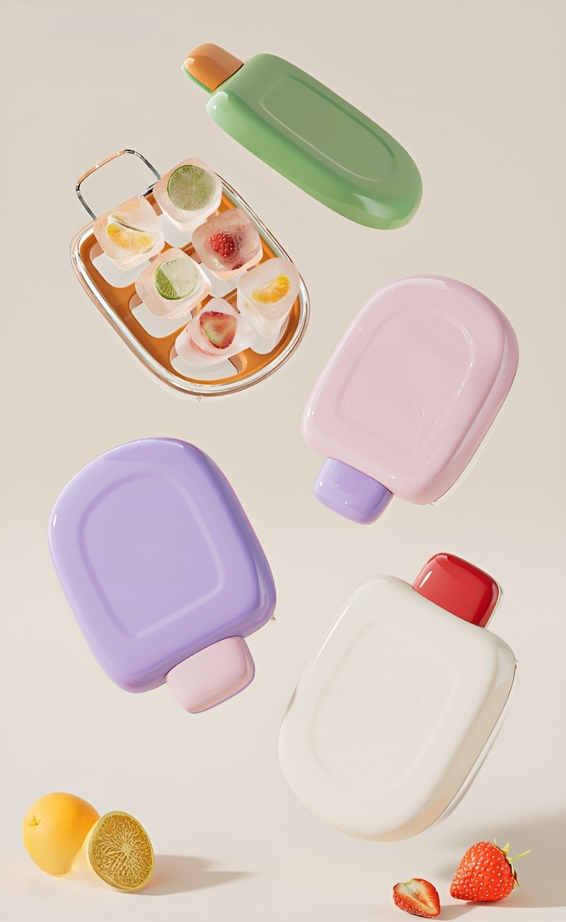 แม่พิมพ์น้ำแข็งแบบกดมือ เกรดอาหาร พร้อมฝา